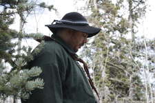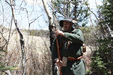 Over the weekend of May 21 - 23, Darko put on another turkey hunting camp for the last weekend of the Colorado spring turkey season. Bill Gantic also joined him in the north eastern part of the Bayou Salade, near Kenosha Pass. The weather was cool the night had a chill, but the winds were high which kept the turkeys from showing. Deer were seen along with plenty of beaver sign and some found elk sheds. On the first night in the hollow below us must have been a camp of Arapahoe's returning from a war party, for they hooped in up for most all the night. We posted guard to watch the stock. The next night they must have moved on for it was much the settled. On our scout we found a wikie up of a party on the move.
