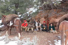 Camp was called for the weekend of January 14 - 16 2011 to be on the AMM land in western Colorado. Being the wise mountaineers we are there was no need to be high in the mountains cold in over 3 feet of snow. Turnout for this camp was great, members attending were the following: Nathan Blanchard, Steve Chin, Bill Gantic, Tom Karnuta, Darko, Rick Lesquire and Scott Walker. Steve provided the party with pack animals to use to bring our gear the four miles into the camp. Scott decided to pack in his camp using a tumpline on his head, what a trooper, he made the whole trip in. The weather was fine for a mid winter camp, warming up into the 40's during the day and low 20's at night. On the hike in what little snow there was quickly turned into slick mud. Camp was struck back under the same spot Brad and Bill had used early this past fall, for it was one of the only spots free of snow and mud. The party set into motion with all needed camp chores, unloading the animals, clearing the ground, gathering firewood, and starting a fire to get the kettles going. Over the weekend many great activities took place such as scouts, shooting, story telling, and shared knowledge. Sign language and shaving colleges were held. Tom brought along his new saddle so Bill and Steve took it out for some test rides. Of course good vittles were eaten, pipes were smoked, coffee and whiskey were drank and good times had by all.