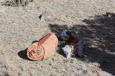 The members of the RMO took to the field for the annual Spring Turkey hunting camp called by Tom Karnuta on the weekend of April 30 - May 2nd. Present were Tom Karnuta, Bradley C Bailey, Bill Gantic, Steve Chin, Scott Walker, and Tom Chalmers. It was located along the Arkansas River near Texas Creek, in a secluded area called Devils Hole. The first challenge was to get all 6 men and gear across the river using only two canoes. Then from there it was about a mile hike in to a nice shelf above the creek bottom. This year only Tom K and Bill were hunting, the rest were just camp keepers. No meat was made, but Bill did get into some birds and had a Tom run in on him and bust him at about 30 yards. Lots of deer and fresh bear sign.
