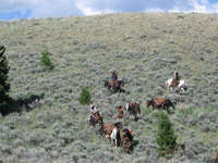June 28th - July 2nd, 2012: Mike Katona, John Paepeghem (Mikes guest) Bill Bailey, Lloyd Britton (Bills guest), Jim Sebastian, Bradley C Bailey, 6 mules, and 2 horses. We did a 3 day ride into AMM Nationals on Sawmill Creek in Montana. We started in Idaho at Modoc Creek and followed the Continental Divide Trail. Riding the ridges of the CDT was a windy experience. The first night we camped in East Fork of Big Beaver Creek, and the second night we made camp near Shineberger Creek. Saw a moose, deer, and grouse on the trail. In our excitement to get on the trail we forgot to pack along the meat, so we subsisted on dry goods and boiled jerk until we made it to rendezvous, only to find out that a fireban had been put in effect and it was a cold camp. Our group was the first to ride into rendezvous. After staying at Nationals for a day and a half it was time to start the long journey back.
