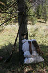 September 1-3, 2012: Brad did a solo Aux Aliments du Pays in the Troublesome along Corral Creek. To make it more of a challenge it was in an area I had never been to before. This area is covered with beetlekill and it is difficult to find a camp site away from the widow makers. Saw a rabbit, moose, and deer on the way in. Spent the days climbing the ridges in search of grouse. Found a few and shot one. Tried fishing but had no luck. Guess they didn't like grasshoppers. Being such a dry year there were no berries to be found, even though the plants were there. I was able to find a few rosehips and plenty of dandelions though. Each day I had to deal with afternoon thunderstorms.